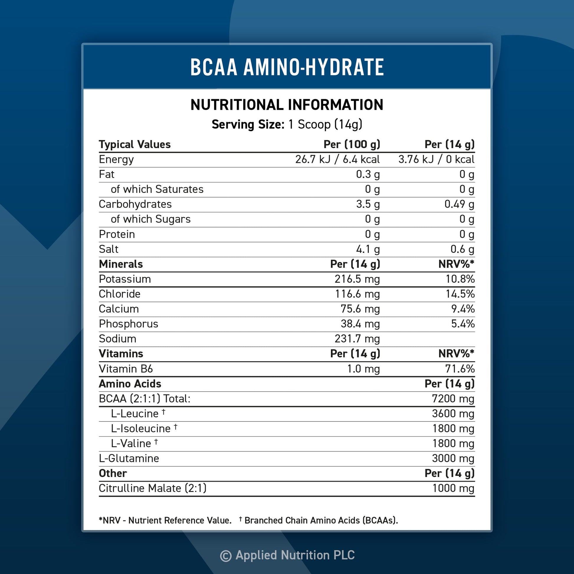7.2g BCAAs • 0g Sugar • 0g Carbs • 0 Calories
