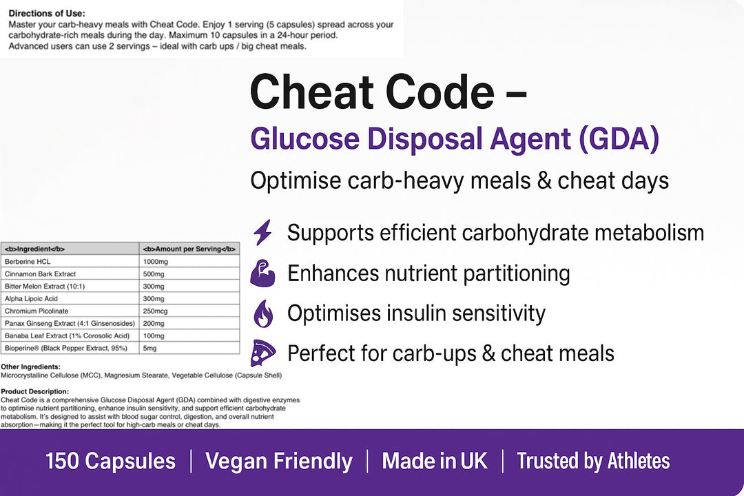 Unlock the full potential of your nutrition with our advanced Glucose Disposal Agent (GDA). Formulated with cutting-edge ingredients, this product is designed to help your body utilize carbohydrates more efficiently, supporting lean muscle growth, improved performance, and better body composition.